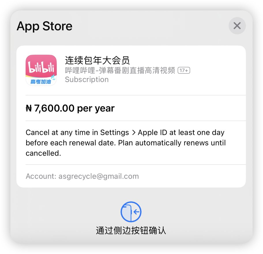 哔哩哔哩bilibili:7600NGN/年(37rmb)