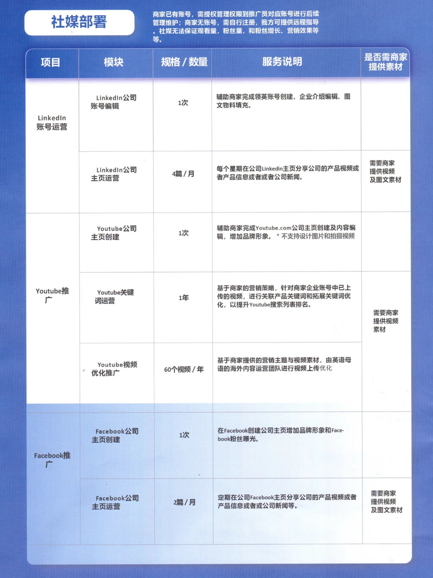 • LinkedIn 公司主页运营YouTube 推广