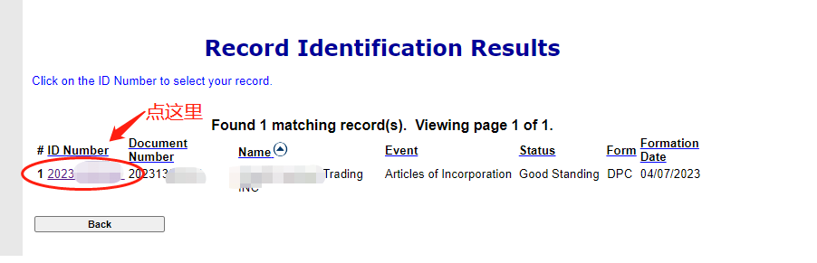 4. 点击搜索结果中“ID Number ”下面的那一串数字,如图: