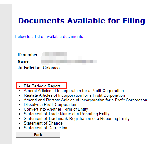 下面以科罗拉多州为例,演示一下如何进行年审。科罗拉多州法律要求所有科罗拉多州公司、有限责任公司和非营利组织每年向科罗拉多州州务卿提交科罗拉多州定期报告(也称为年度报告)。
