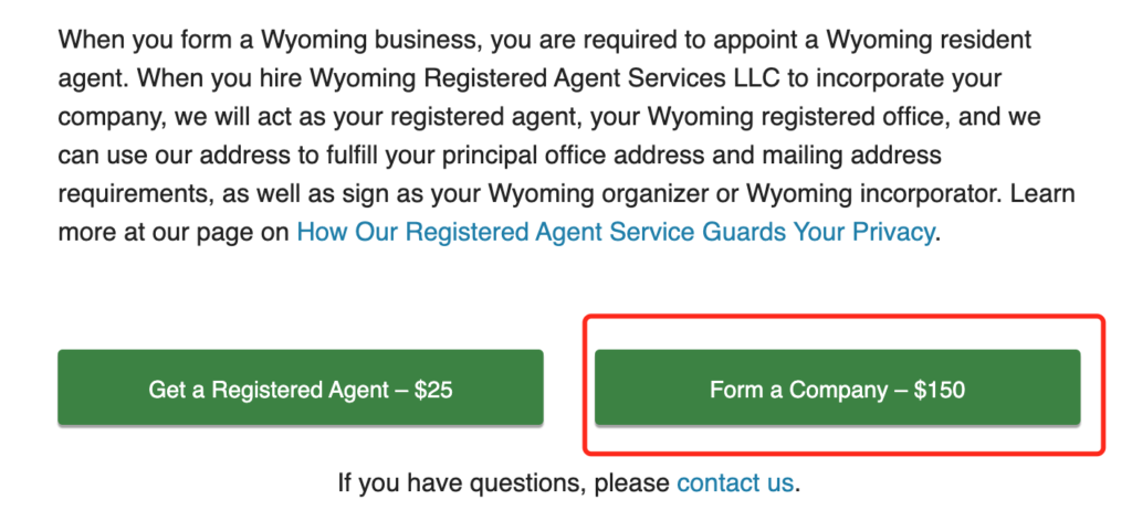 目前 wyomingagents.com 上提供了代理申请,价格是 9刀, 如果是刚注册的公司,注册的时候会帮你默认勾上。 case1: 24年后注册的公司