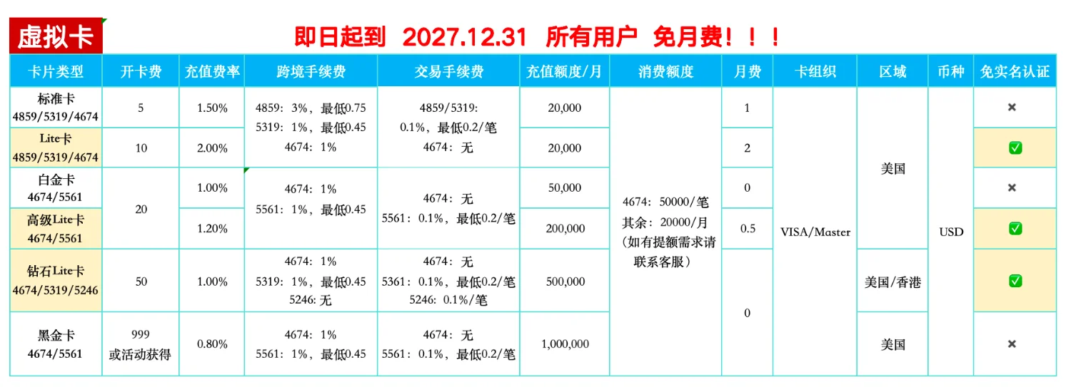 如果你有非大陆身份证件,可以注册已经关门的 OneKeyCard,汇率更好,使用更方便,价格更便宜,更能无限开卡,不用月费
