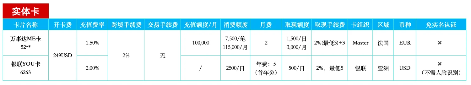 Vcard支持身份证、护照/港澳通行证KYC,也有无需KYC即可使用的虚拟卡/实体卡 入金方式:交易所购买USDT,转入Vcard,兑换成USD或其他法币,直接消费即可 Vcard是小白能接触到门槛很低的美卡了,没有更好的选择情况下请用 Vcard相比dupay:费率更低,且支持实体卡(免KYC实体卡199u,KYC后的实体卡99u,支持邮寄国内)